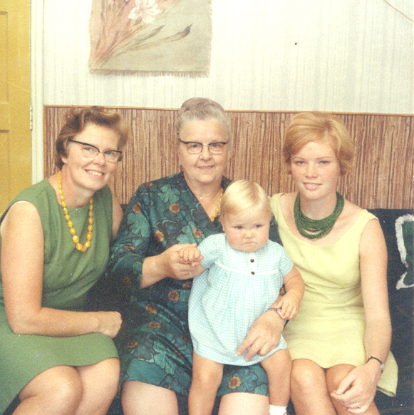 de 4 generaties moeder Klinkhamer-Bauer oma Bauer met Yvonne op schoot Regina Straat-Klinkhamer |